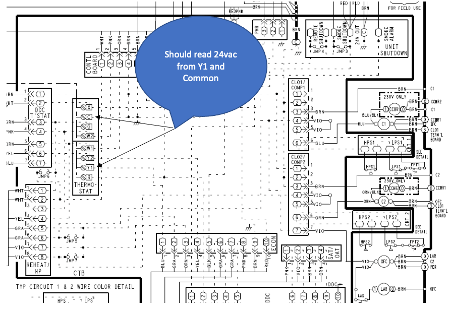 4. Check for 24VAC on the CLO1/COMP1 Plug pin 4. If you read 24VAC here, this will indicate there isn’t an issue with the ECON Section.